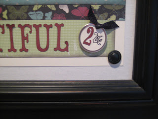 I bought this Advent calender kit at an expo last fall. The kit is from Kaisercraft. I had planned to have it done by December 1st, but that didn't happen. So I got it done for next Christmas. It was very time consuming to put it together, but it turned out cute. I used Mistletoe and ornaments dimesional elements.